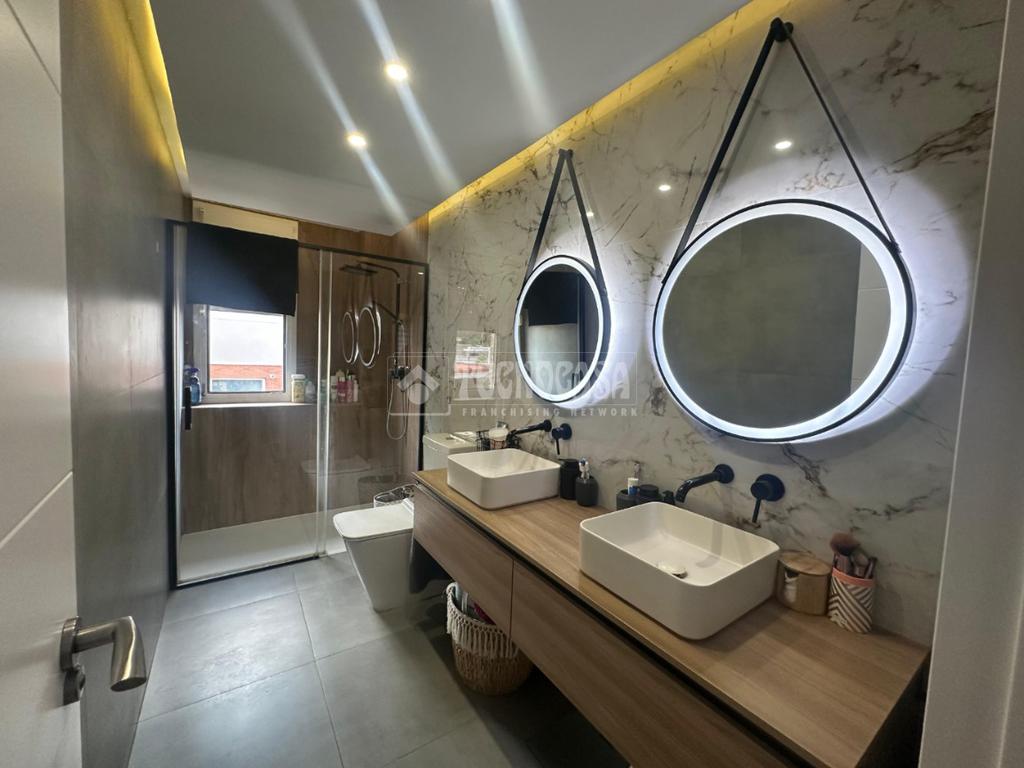 Zona de descanso con tres dormitorios dobles y dos baños completos, uno de ellos en suite dentro de la habitación principal.
